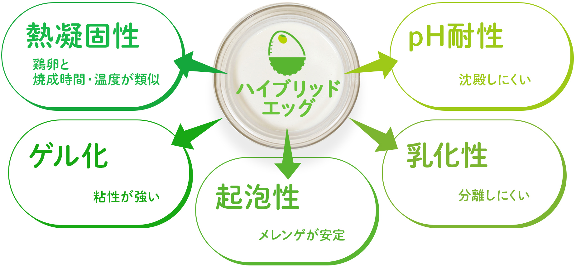 卵と併用することで、卵のおいしさはそのままに、既存の卵製品と同じ調理法が可能な新しいプラントベースフードです。